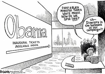 So, it seems to me that Cardinal George was willing to save face rather than step out on faith that Pfleger was on to something with his radical judgments of the state of race relations in this country. Especially juxtaposed to denominational presidents coming out to speak on and defend more or less the establishment of Trinity United Church of Christ and their association with Jeremiah Wright. Is the church about saving face or about stepping out on faith that the direction they are headed is the direction where God is. I guess its the age old debate about religion and politics mixing together (guess you could add race into the mix whenever applicable).
