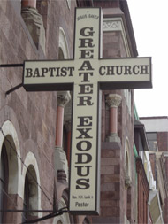Before I say what occurred in the group discussions, I’d like to pause here and say that euphemisms have effectively killed serious and meaningful discussions about flashpoint issues; euphemisms merely pour fire onto a fire that very well may be out of control.  Case in point: Our group was to have a night of “cultural exchange” with Greater Exodus Baptist Church on North Broad Street and I guess since I’ve been black for so long, I figured that this was a black church.  I mean, my friends and I make jokes about the names that black churches come up with, especially the storefront ones that may be associated with some off-brand Holiness denomination.