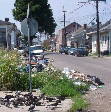 Now, I could wax on poetic and make this post even more epic than what it is, but I really think it boils down to that.  By 2005, the surplus of the Clinton era was quickly going into the good night and in impoverished city centers like Hollygrove or Gerttown in New Orleans, Chester, Pennsylvania, the Lawndale and Roseland communities of Chicago, that surplus barely, if ever, made it to these all black communities in the first place.   Coupled with the New Orleans culture of hurricanes, if after 40 years no hurricane has come, and the residents that remembered that one and remembered the federal response following it–why leave for this one.