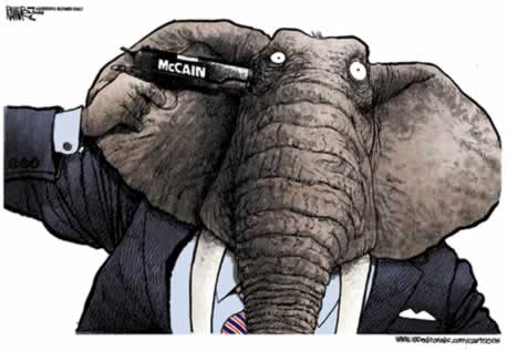 I don’t know if he got co-opted by the Republican Party machine or what, but when he picked homegirl from Alaska, I realised something was in the air.   Honestly, I’m sticking to this small conspiracy theory that McCain is really being controlled by some bigger forces.  This attack dog politics is NOT his M.O.  I mean, look at him, aside from a flaring temper, he’s not a passionate man.  He’s relatively controlled in his movements, his speeches aren’t rousing at all and he actually looks like a puppet the way he moves his arms when he talks.