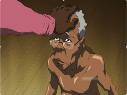 Its unsettling, for me personally, that this is the image of the elders. Granted elders can be very much out of touch with contemporary reality, and I’m okay with that imaging, but, personally, I must ask when does the reflection of the stereotype begin to be reworked into creating an archetype? Throughout the entire cast on The Boondocks, none of the elders (albeit only two of them Uncle Ruckus and Robert Freeman) exist as some pinnacle of sagacity. Even Stinkmeaner, who was an elderly man, was a bat out of hell–literally! And so was his crew who came back in season three and they were imaged as the 1970s sitcom characters Sanford, Aunt Esther and JJ (although their characters in this episode were completely unrelated to their likeness) were imaged as old persons, who clearly were in no position to be venerated.