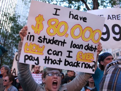 Two people, two lawyers who are making big bucks, can’t afford to pay off their student loans until they’re in their 40s.  Their combined student loan debt was more than their mortgage.  You can’t tell me that that’s not the work of SAY-TUN.  Essentially you’re telling me I have to hope to strike it rich or else I’m going to be paying on this crap until I die or Jesus comes back — or God sticks a toe out from the clouds and ends this foolishness immediately.
