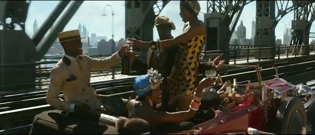 The choreography of the black servants throughout the whole movie was sobering, and frankly reminded me of the cinematography of the servants at Candie Land, the plantation owned by Calvin J. Candie, also played by Leonardo DiCaprio in the movie “Django Unchained.” It was reminder that blacks made up the backdrop of this American dream landscape. The music of the black man sitting on the fire escape in New York hearkened to an era we don’t see in cinema portrayed that often; it seemed to be an intentional nod to blackness, to call up the fact that much of the music that was synonymous with the Roaring Twenties was indeed jazz and it was a music genre attributed with black culture at the time. Not to mention the fact that during the 1920s, the Great Migration was in full effect which fueled the Harlem Renaissance as well. Historically speaking, it wouldn’t have been completely unheard of to possibly have seen a young black guy walking down the street carrying a trumpet.